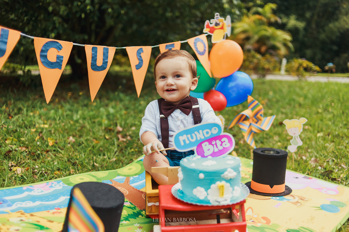 Augusto vai ainda completar seu primeiro aninho daqui alguns dias, mas mamãe e papai já quiseram fazer uma sessão de Smash the Cake (esmagar o bolo) no tema do Mundo Bita que ele adora, mas o Guto está dieta e não quis nem saber de doce, a reação dele em contato com o bolinho era ao contrario da gente que é louco por doces, a pesar dele não ter esmagado o bolo brincou de aviãozinho com os papais, fotos em família, andou no seu caminhãozinho e ainda fugimos da chuvinha que só esperou a gente poder fazer umas fotos pra cair por dias. Confira nas fotos a seguir.